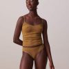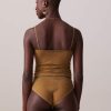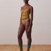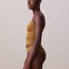 Ribbed lingerie top with thin, adjustable straps. The neckline is adorned with a scalloped edge. Diagonal ribbing adds a graphic touch.